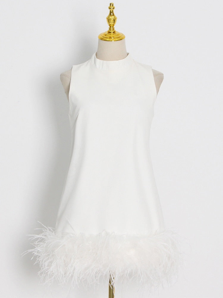 Dress up your casual wardrobe with this versatile women's dress. It's a great way to add a feminine touch to your look. The sleeveless design keeps your shoulders uncovered. A feminine feather decoration at the bottom adds a playful detail at the dress.