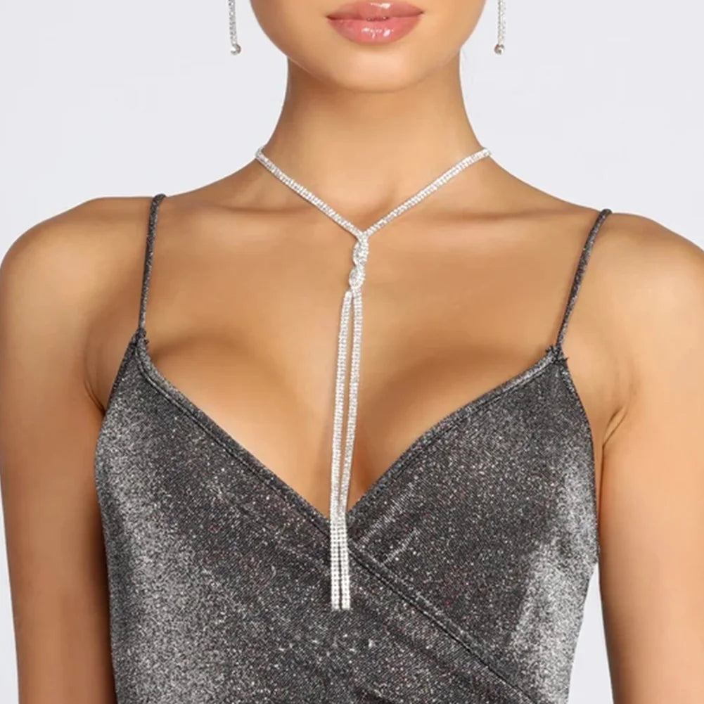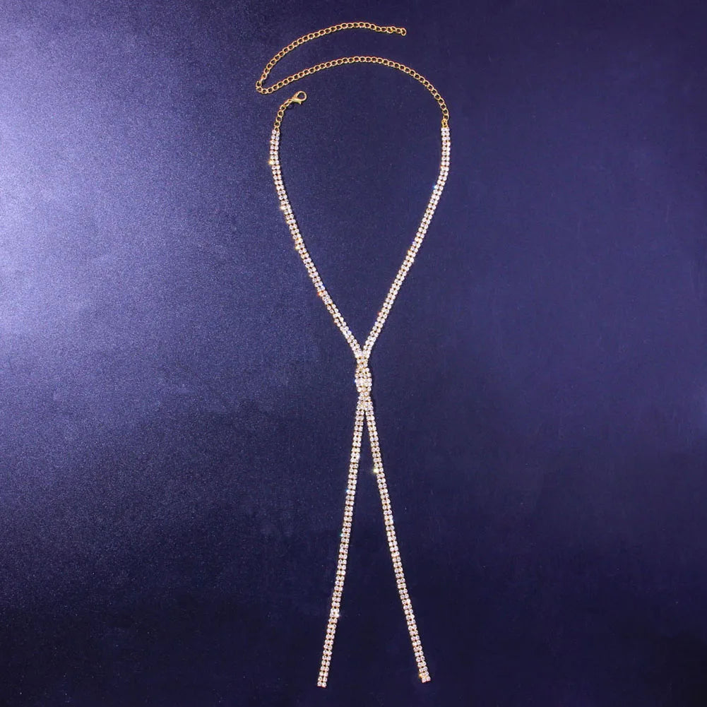 Indulge in the beauty of this necklace. With its unique geometric design and sparkling rhinestones, it's the perfect accessory to show off your stylish side. Let this necklace be a reflection of your own heart, shining bright and full of passion.