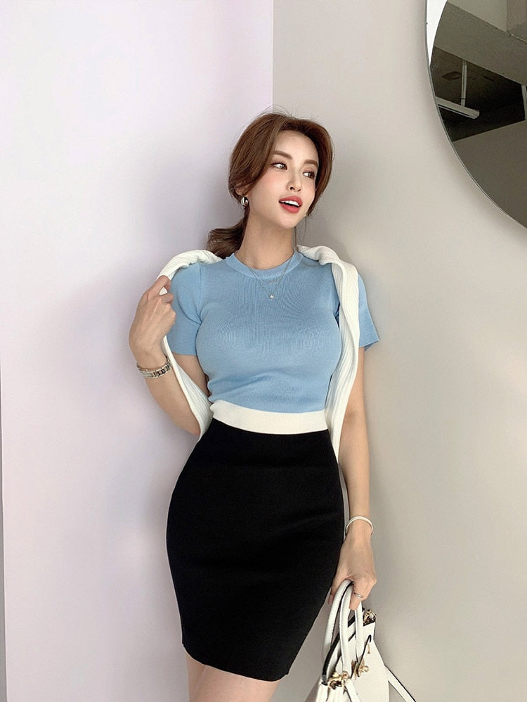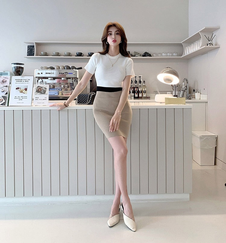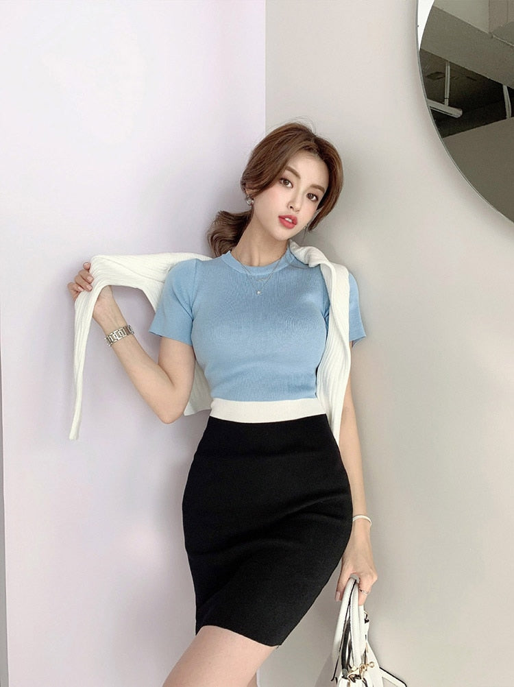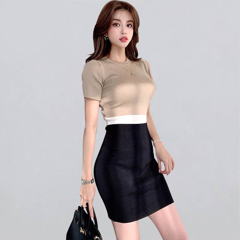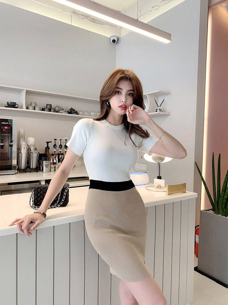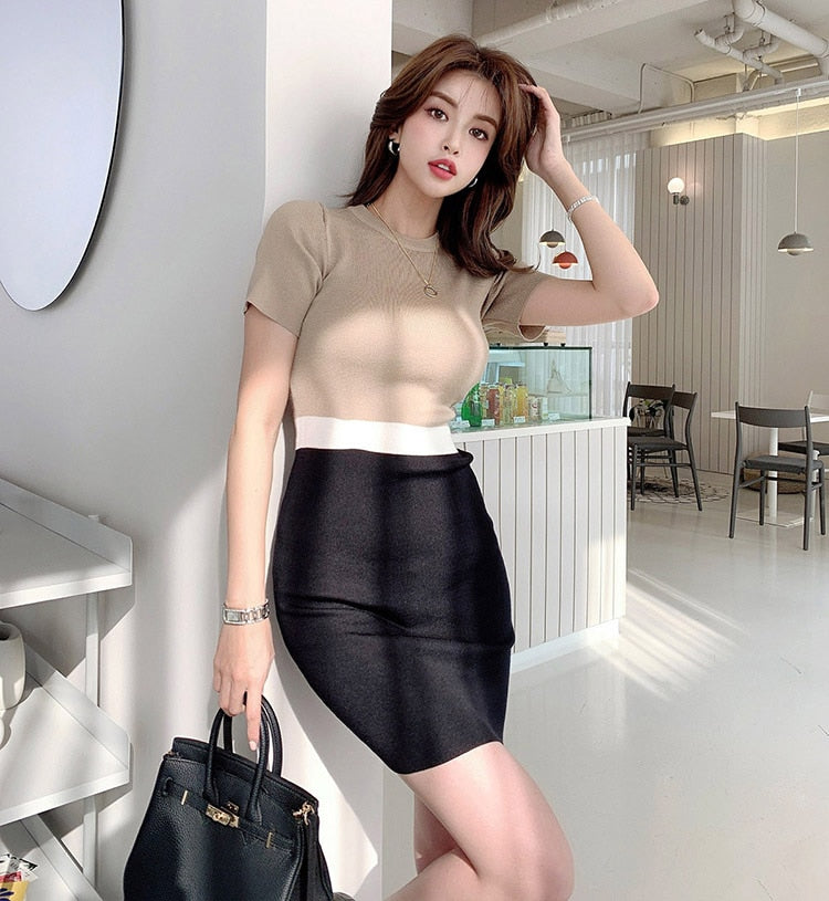 This stylish mini dress is crafted with knitted acrylic for a soft, lightweight feel. The stylish patchwork and O-neck make this an ideal pick for any occasion. Perfect for the modern fashionista who puts comfort and style first.