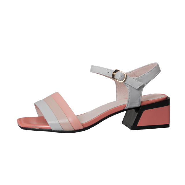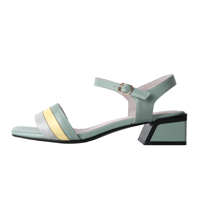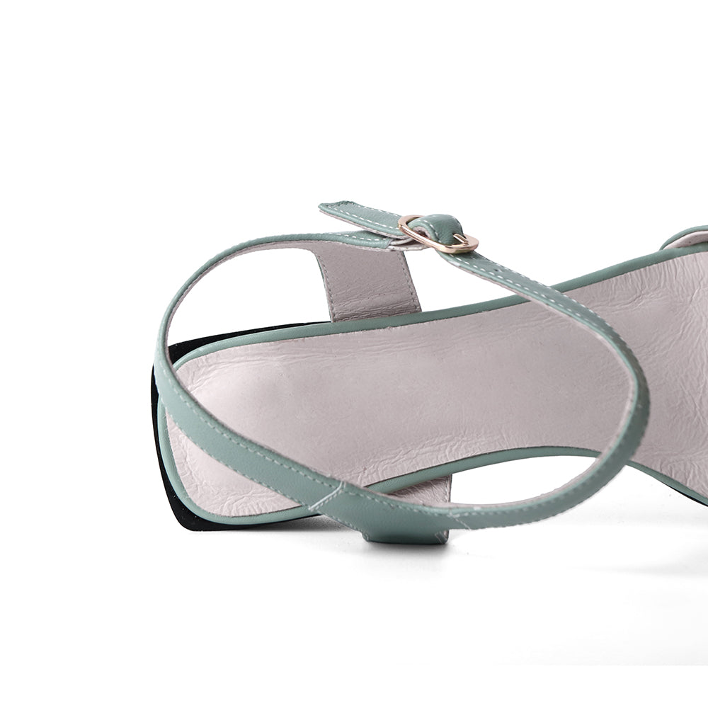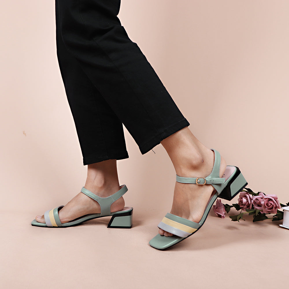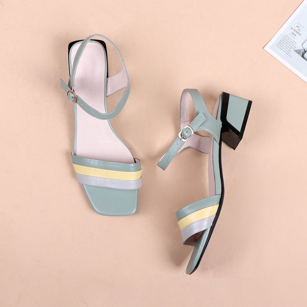 Sandalias con tira al tobillo con material superior de piel de oveja genuina, tacones gruesos y punta cuadrada