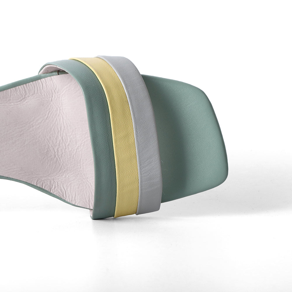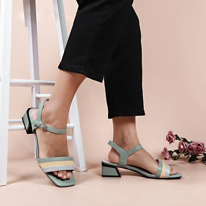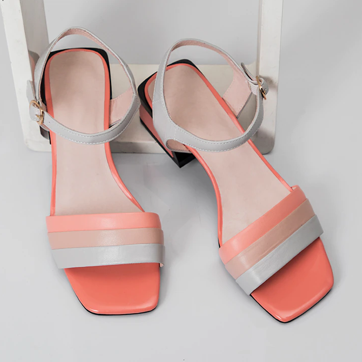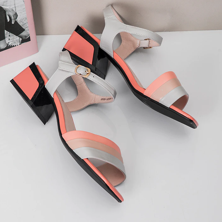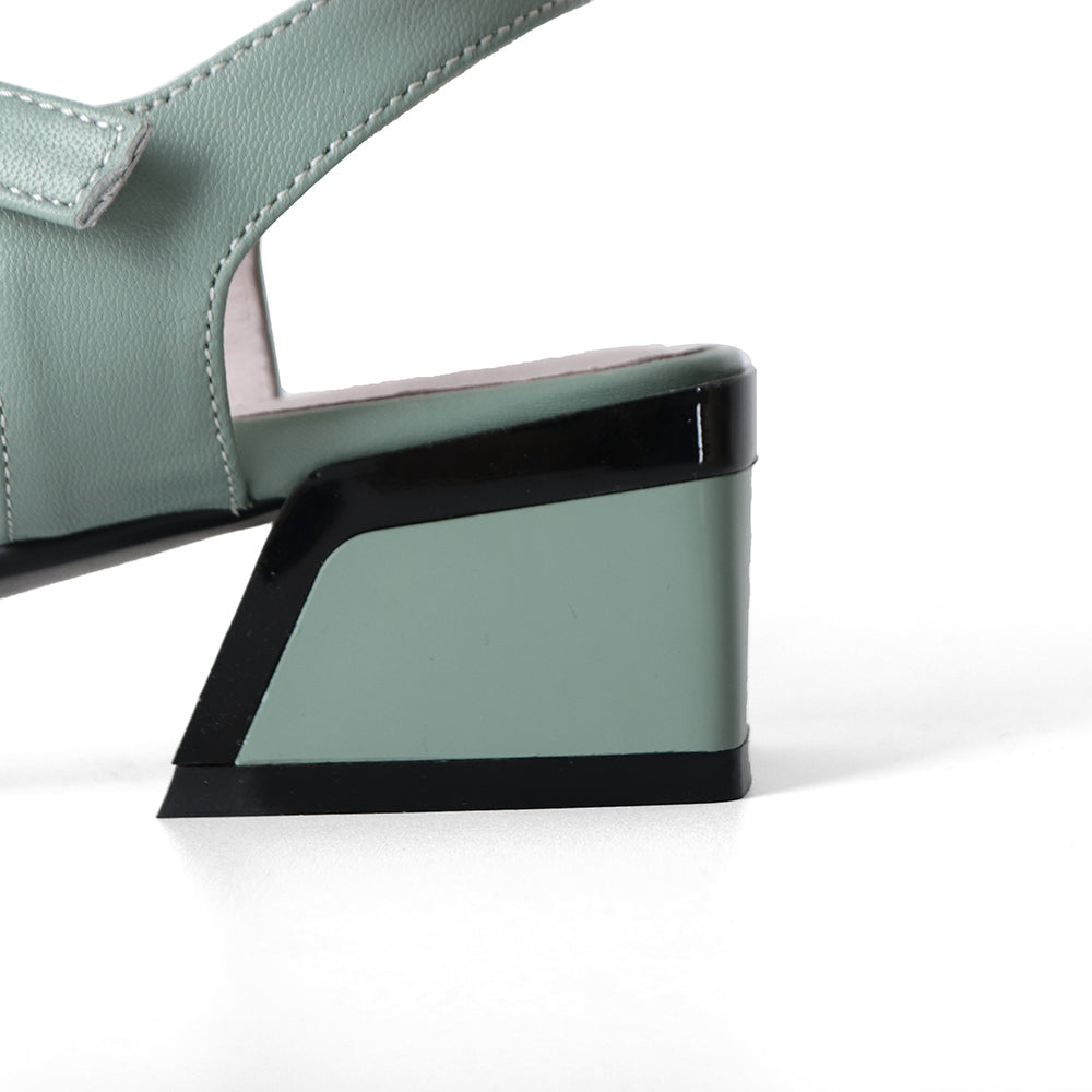 Sandalias con tira al tobillo con material superior de piel de oveja genuina, tacones gruesos y punta cuadrada