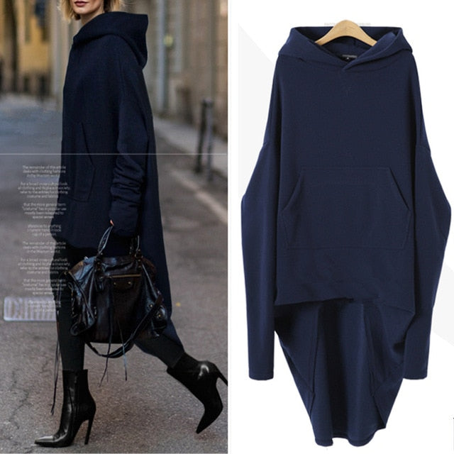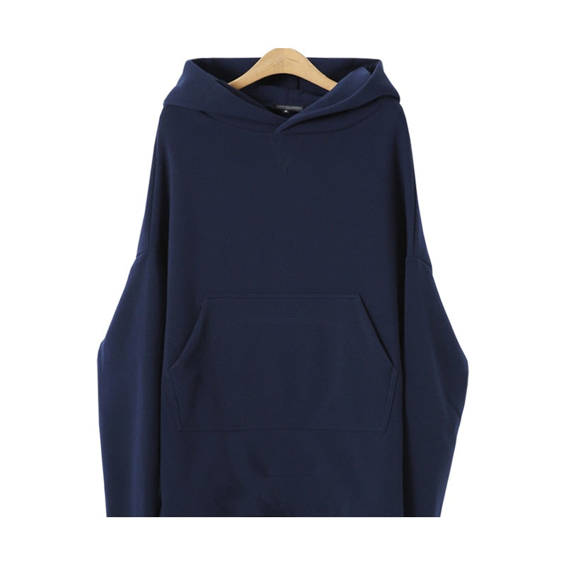 Suéter liso con capucha y manga de murciélago con bolsillo y material de algodón y poliéster