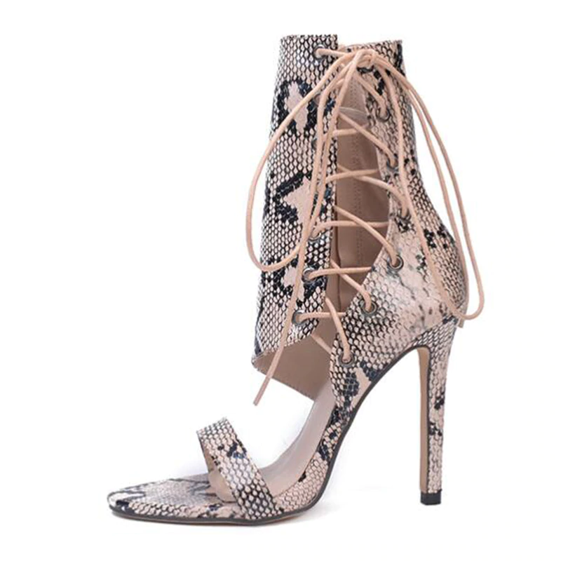 Tacones finos con tiras cruzadas y estampado Gladiator Python