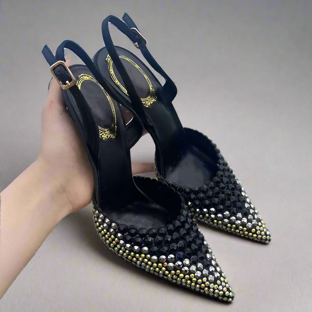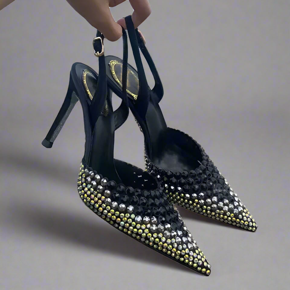 Elevate your style with our Love Me Do Slingback Shoes! Adorned with sparkling rhinestones, these pointed toe shoes add a touch of glamour to any outfit. Perfect for a night out or a special occasion, these shoes will make you feel confident and chic.