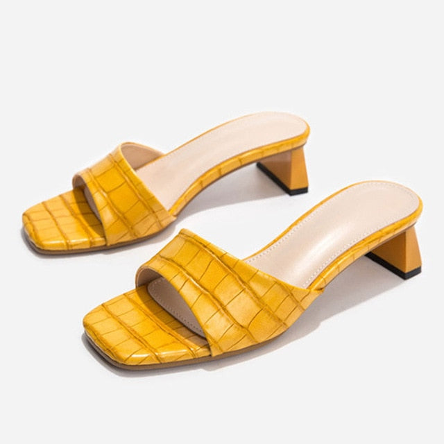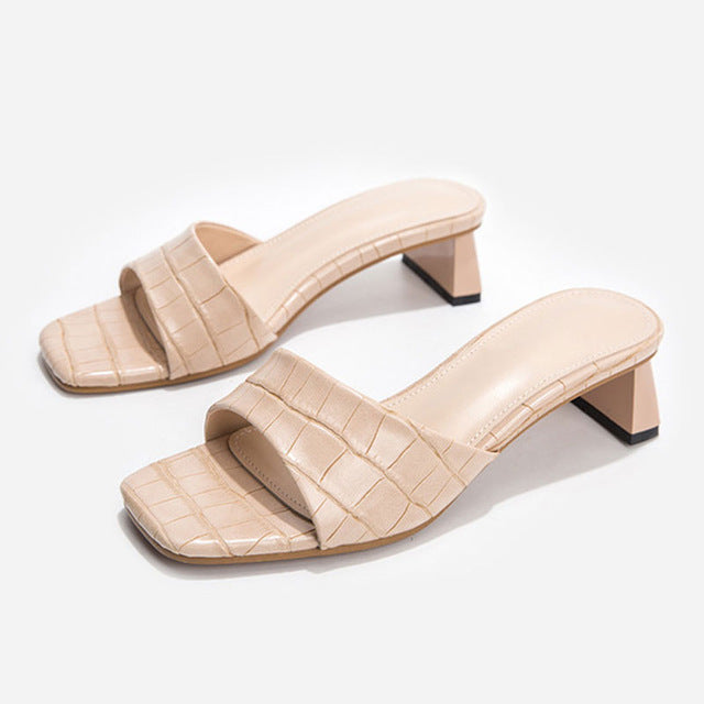 Sandalia con estampado animal de tacones cuadrados de cuero PU