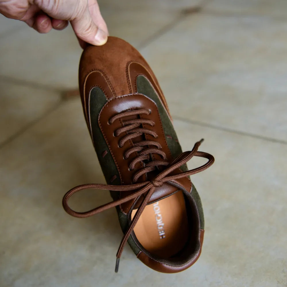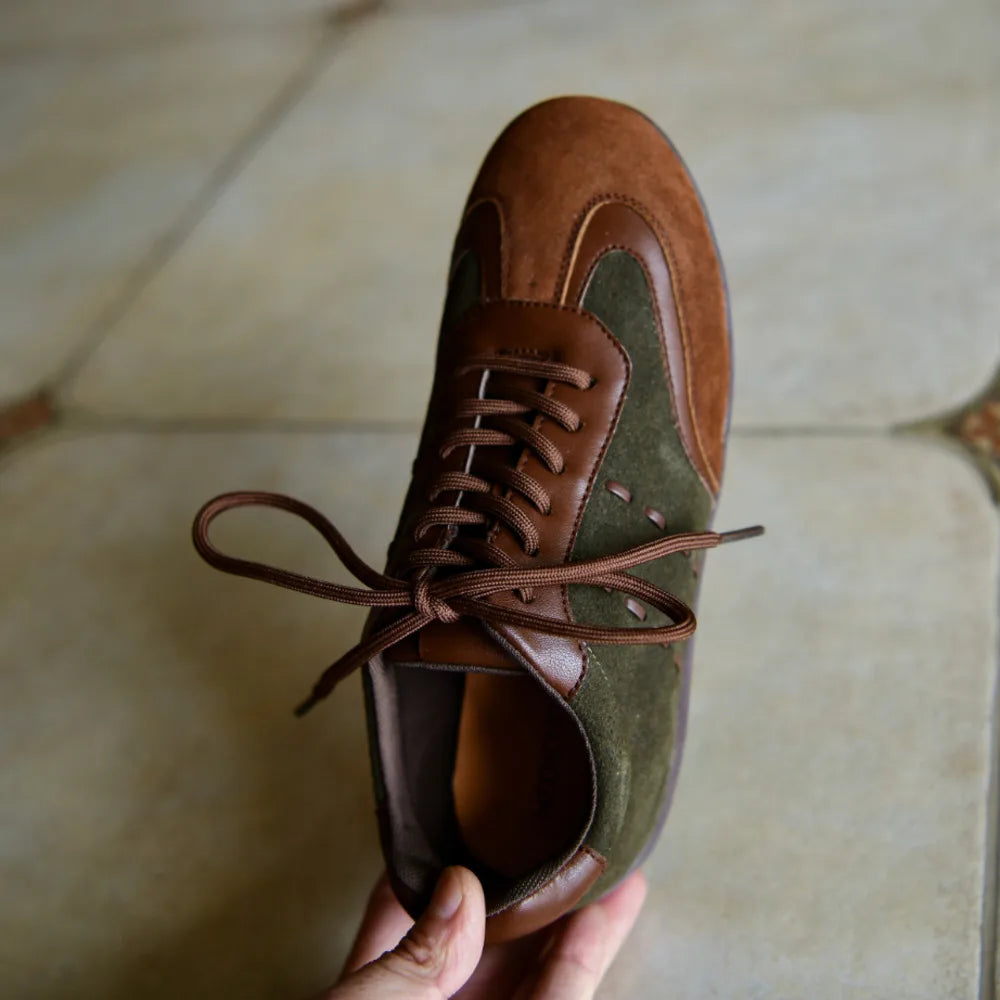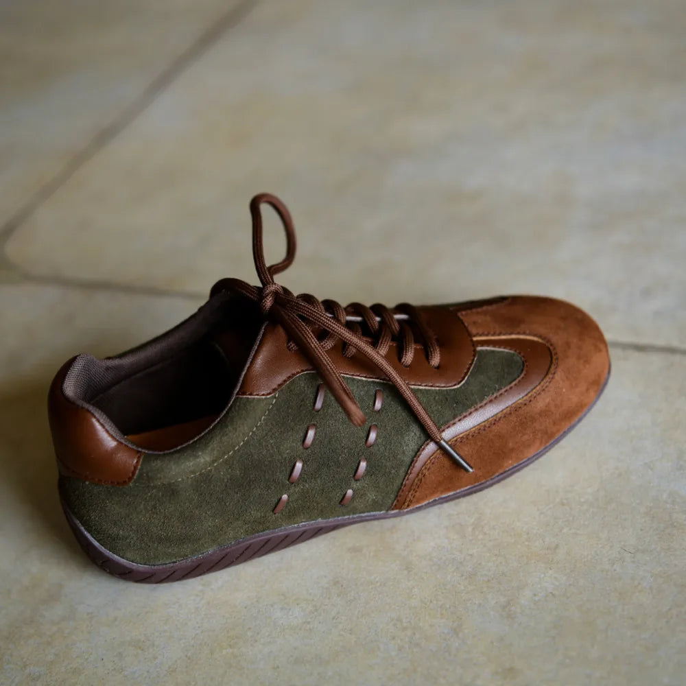 Vintage Green Brown Lace-Up Sneakers