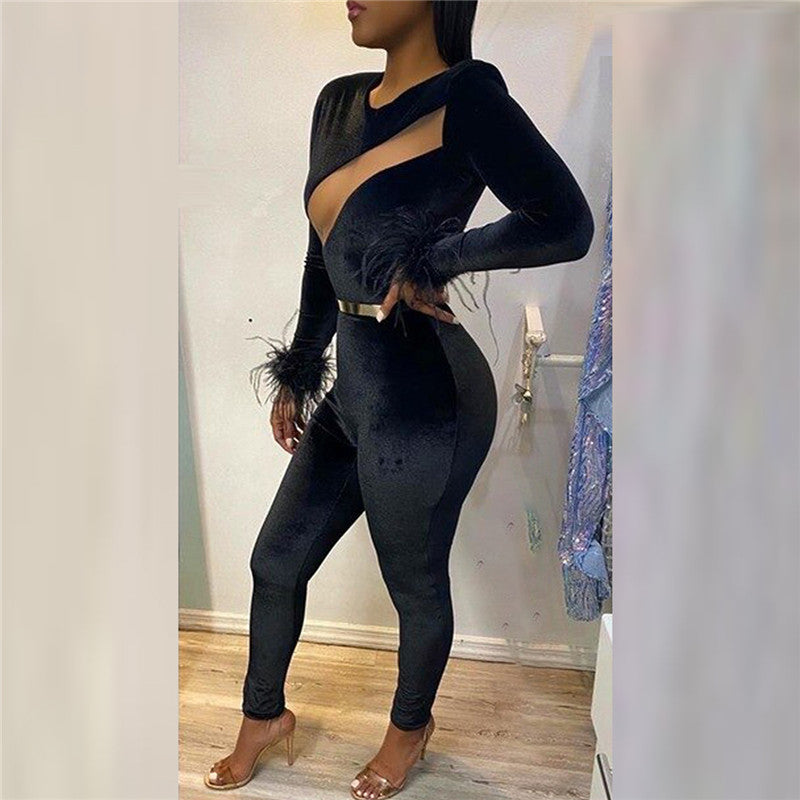 Mono de corte ajustado con color sólido, decoración ahuecada y material de poliéster spandex
