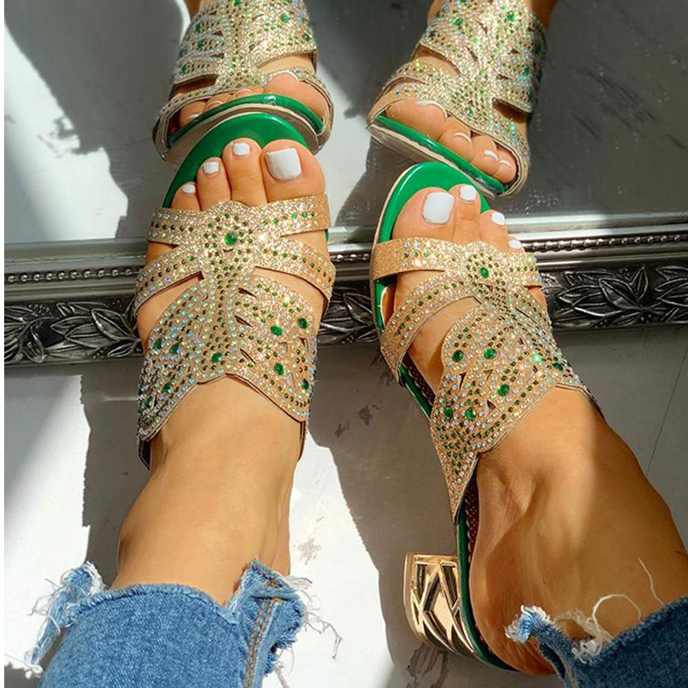<transcy>Slip On Leisure Sandalia de tacón dorado</transcy>