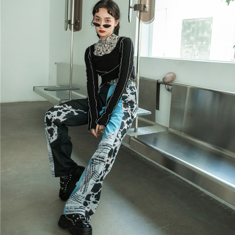 These jeans have a straight fit with a comfortable high waist for a flattering look. These jeans are made of a cotton-polyester blend that's soft and comfortable. The various patterns on these jeans make them look more stylish.