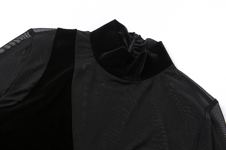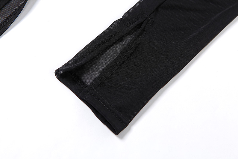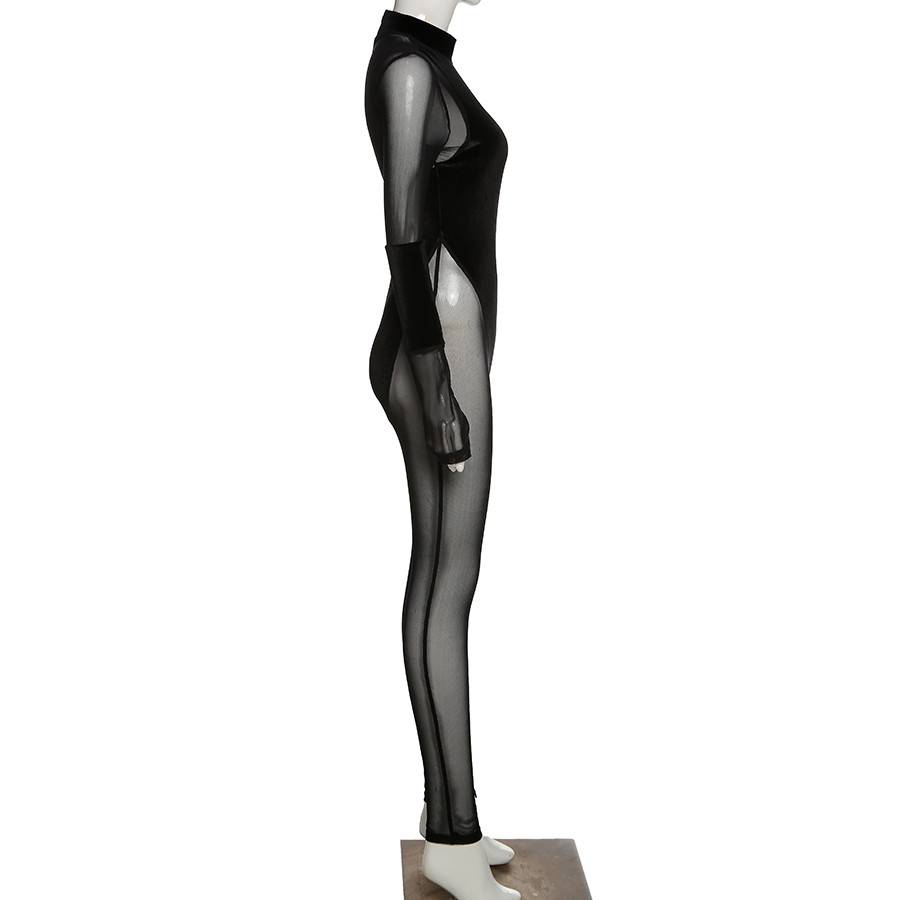Mono de manga larga con malla de poliéster y spandex con estilo combinado transparente