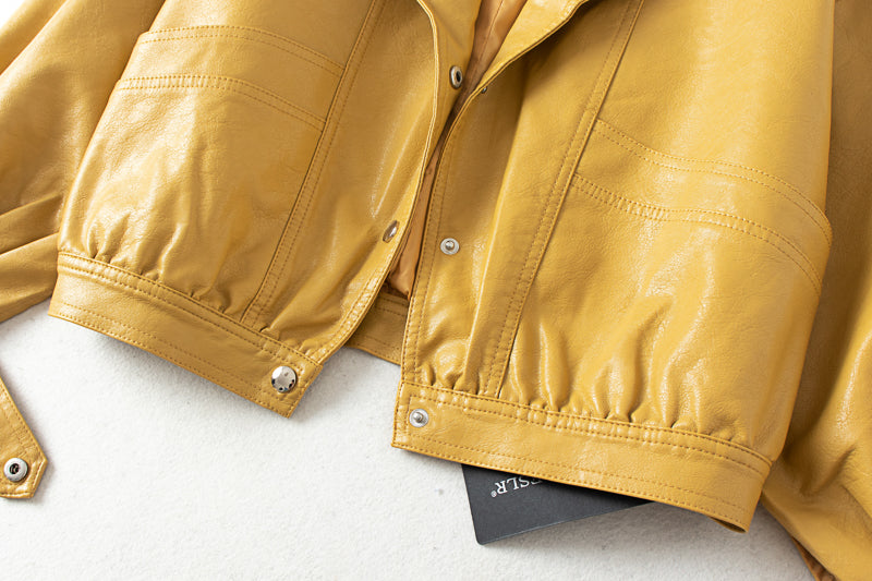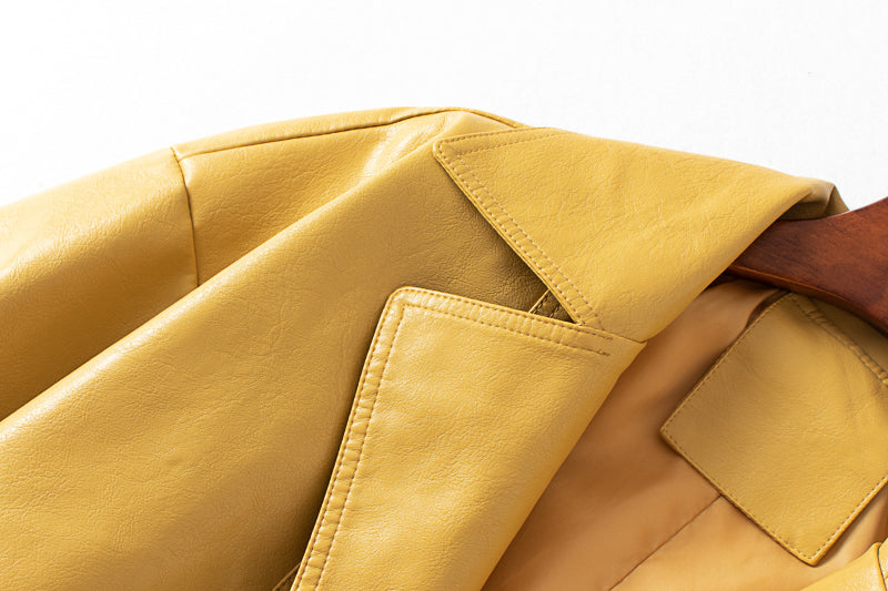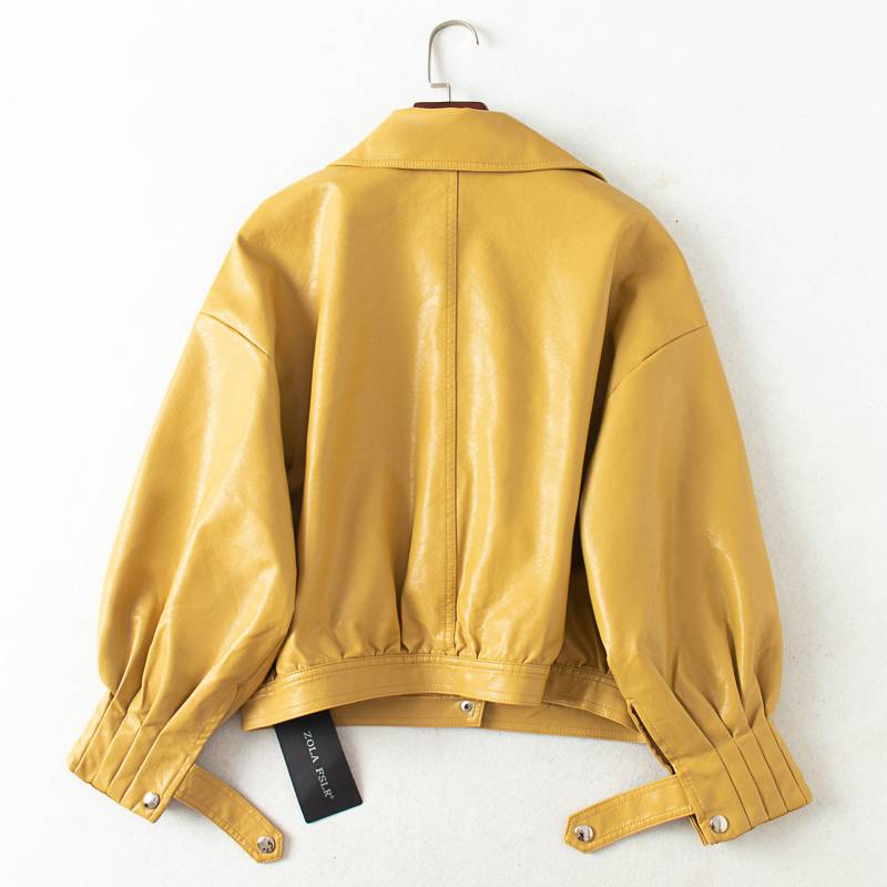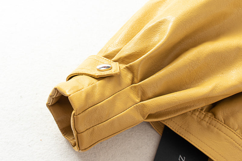 Classic and versatile, this faux leather jacket can be worn with jeans and a T-shirt for a casual day out or with a dressier top to add a touch of chic. The pleated and sashes decoration on the sleeve gives it a more stylish look.