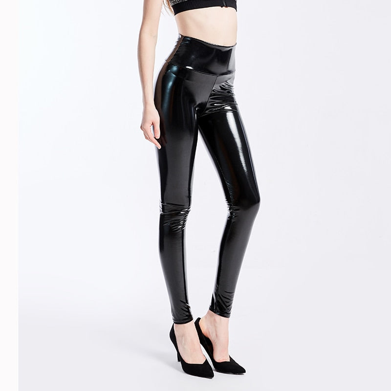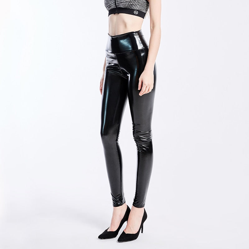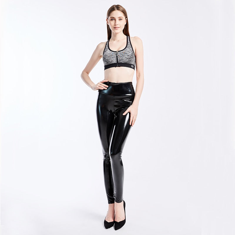 Leggings sólidos de cintura alta hechos de material de látex