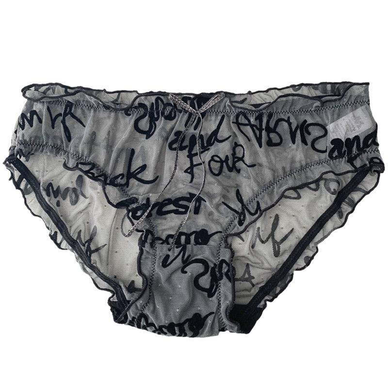 Calzoncillos de malla con estampado de letras con decoración de volantes y material de nailon
