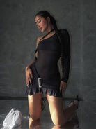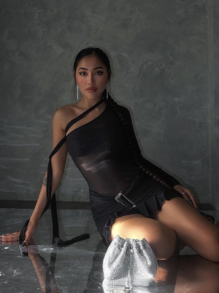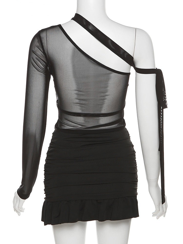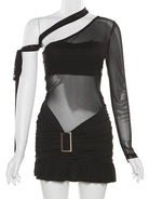 Understated and elegant, the Got No Type Mini Dress is a stylishly versatile dress. Made of polyester and featuring a solid black diagonal one-sleeve, you'll never go wrong with this dynamic and timeless piece. Perfect for any occasion, this dress will become your new go-to.