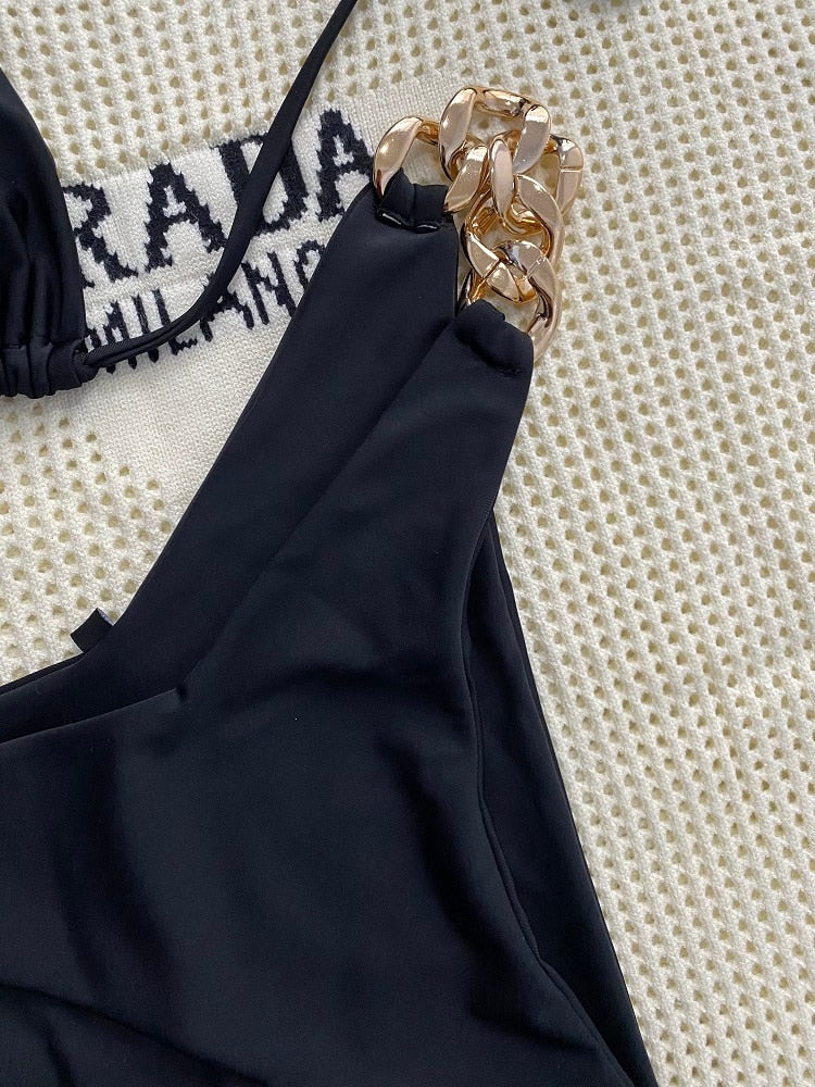 The It's Coming Back Around Bikini is a stylish swimsuit designed to make a statement. Made of durable nylon, it features a solid color with a unique chain decoration. This is an excellent option for a glamorous beach look.