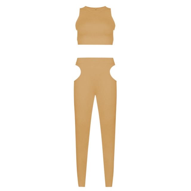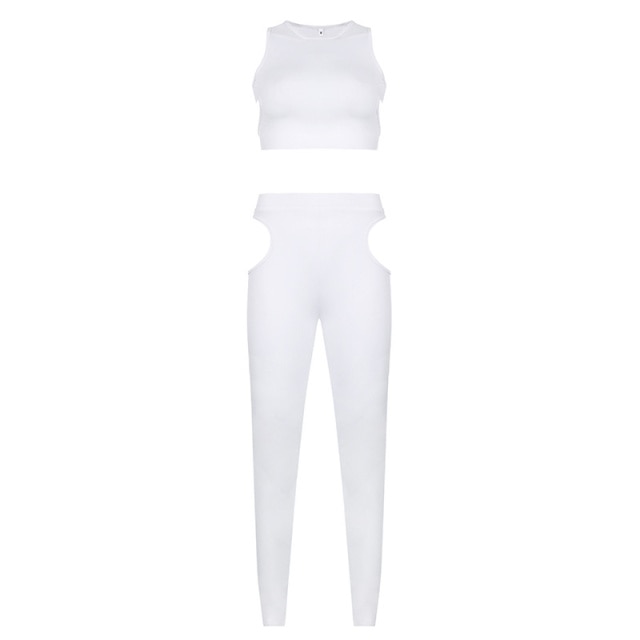 This pants set is perfect for daily or exercise. The fabric is soft so you will feel comfortable when wearing them. It has hollow-out decoration making it stylish and you can show off your figure.