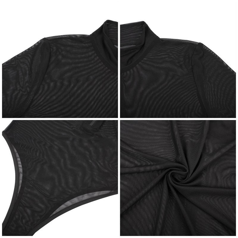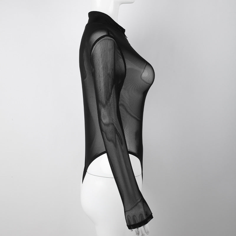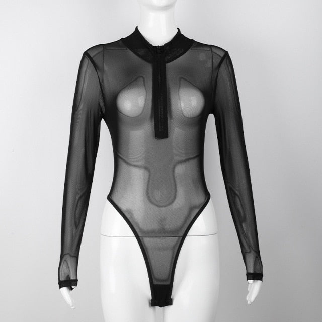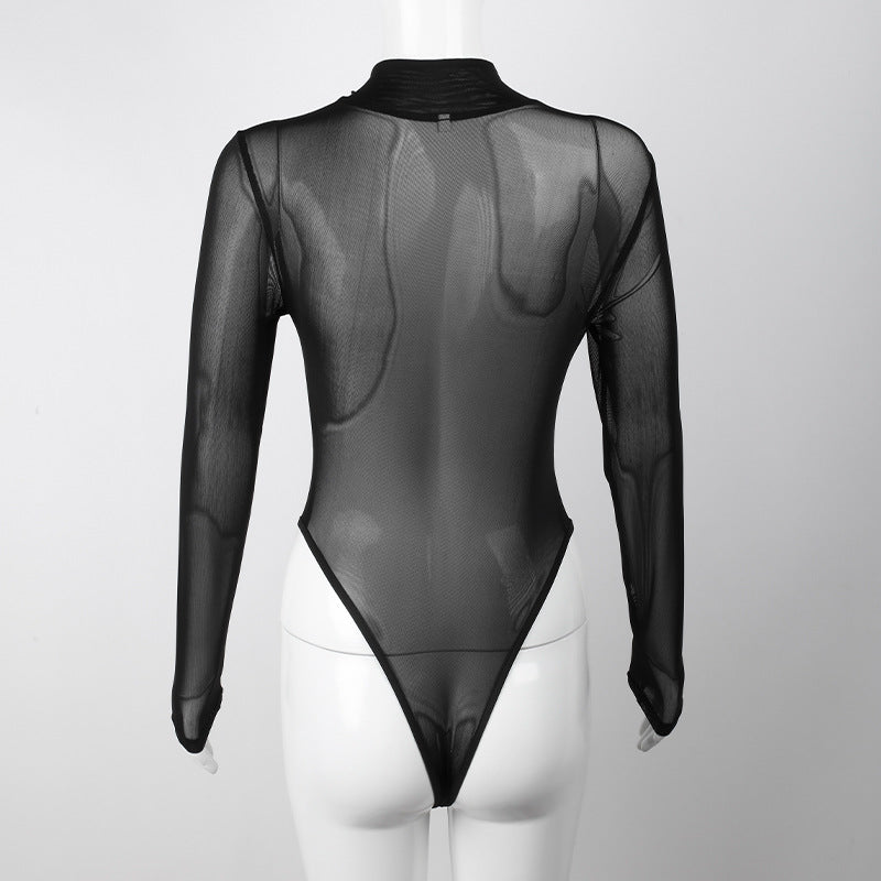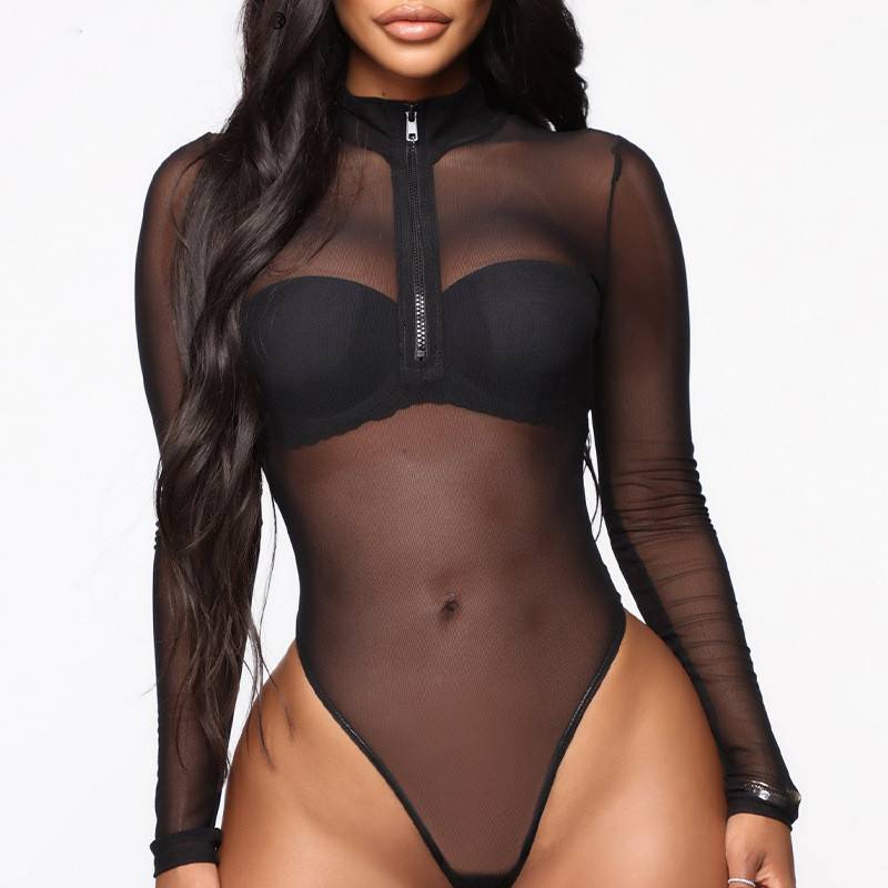 Body transparente de manga larga con cierre de cremallera y cuello alto