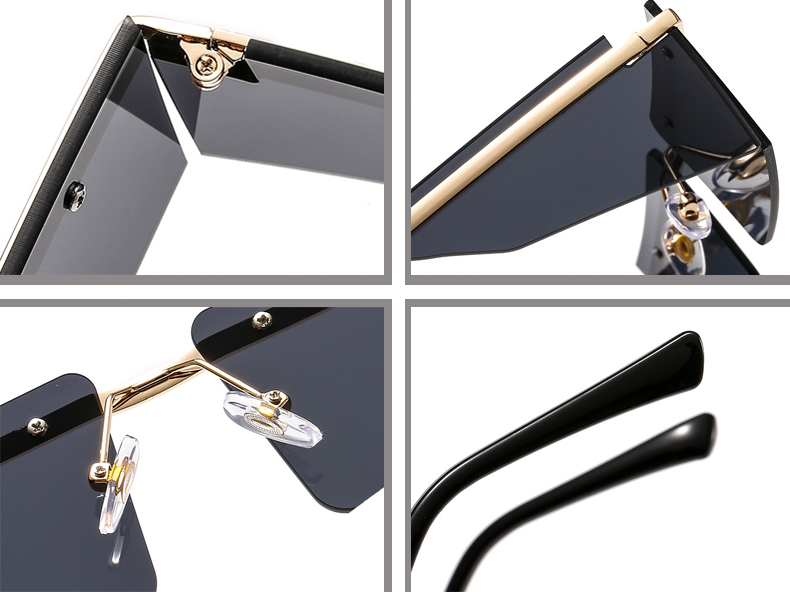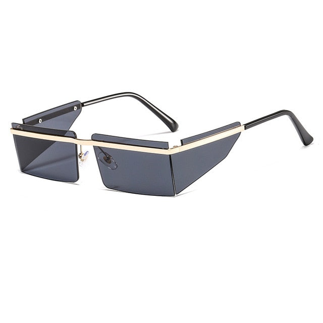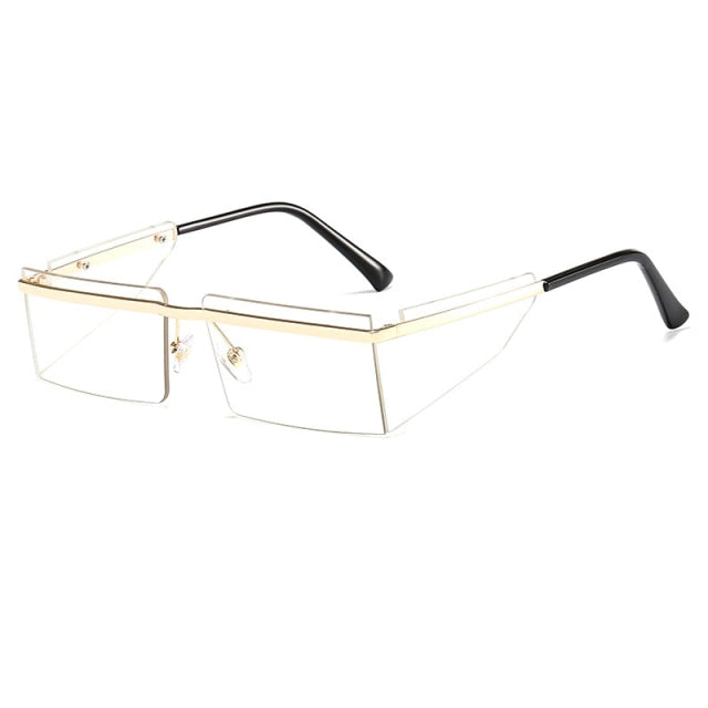 Gafas de sol rectangulares con montura de aleación semi sin montura y lentes de policarbonato UV400