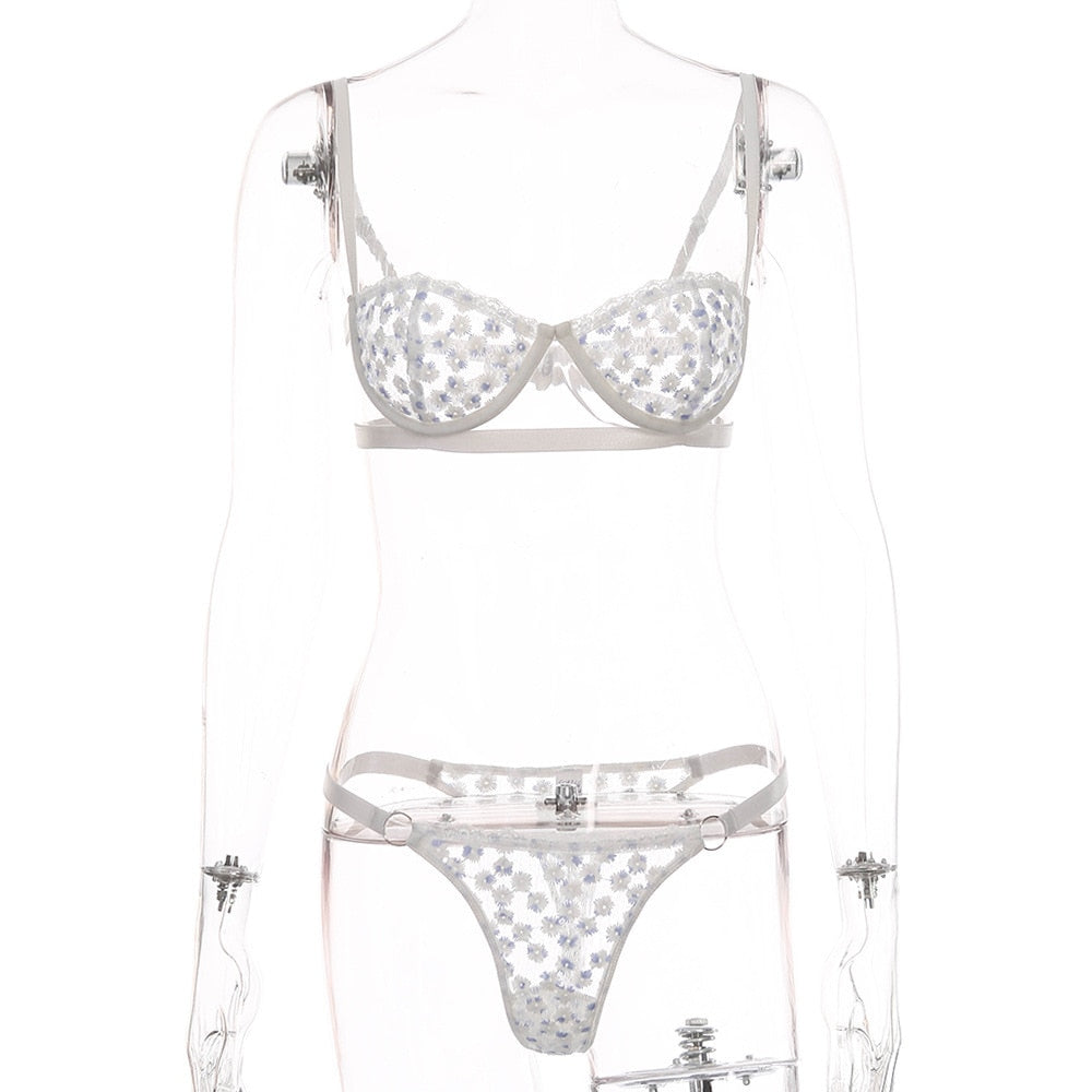 Conjuntos de lencería con bordado floral con aros y material de poliéster spandex