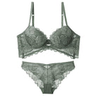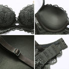 Conjuntos de sujetador push-up de encaje acolchado con estampado de flores y material de algodón y poliéster