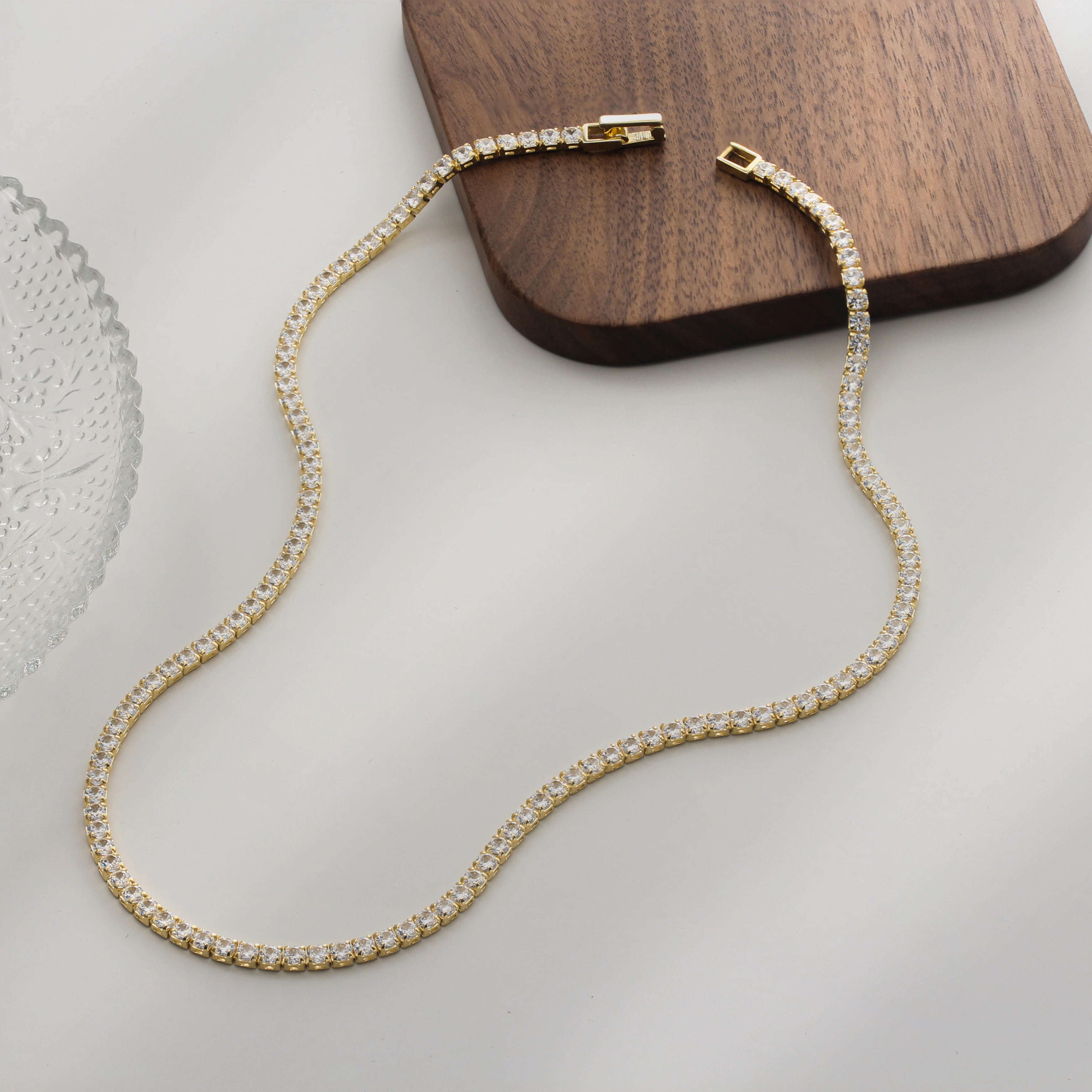 Made from high-quality 925 sterling silver, the Kisses Down My Neck Tennis Necklace exudes bold elegance. Its sleek design hugs the neckline with a confident sparkle, perfect for those who dare to stand out and make a statement. Elevate your look with this fearless accessory that blends timeless style with a modern edge.