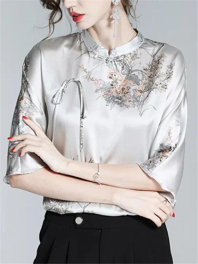 Be happier in the Make You Happier Blouse! Made of comfortable acetate material and featuring a beautiful print, this regular fit blouse will make you feel confident and stylish. With petal sleeves and a standard thickness, it's the perfect addition to any wardrobe.