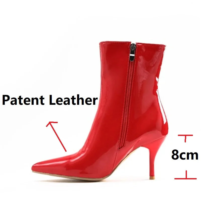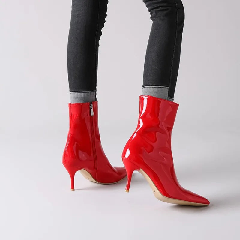 Step out in style and confidence with our Blazing Rhythm Ankle Boots! Made with high-quality patent leather, these boots are not only durable but also add a touch of sophistication to any outfit. The plush insole provides ultimate comfort, while the thin heels give you a bold and elegant look. Upgrade your shoe game today!