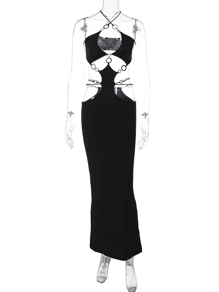 Introducing the Blurred Lines Beauty Maxi Dress! Featuring a slim fit and halter neckline, this ankle-length dress is sure to turn heads. The solid pattern and hollow out decoration add a touch of unique style, making it perfect for any occasion. Get ready to make a statement with this must-have piece!