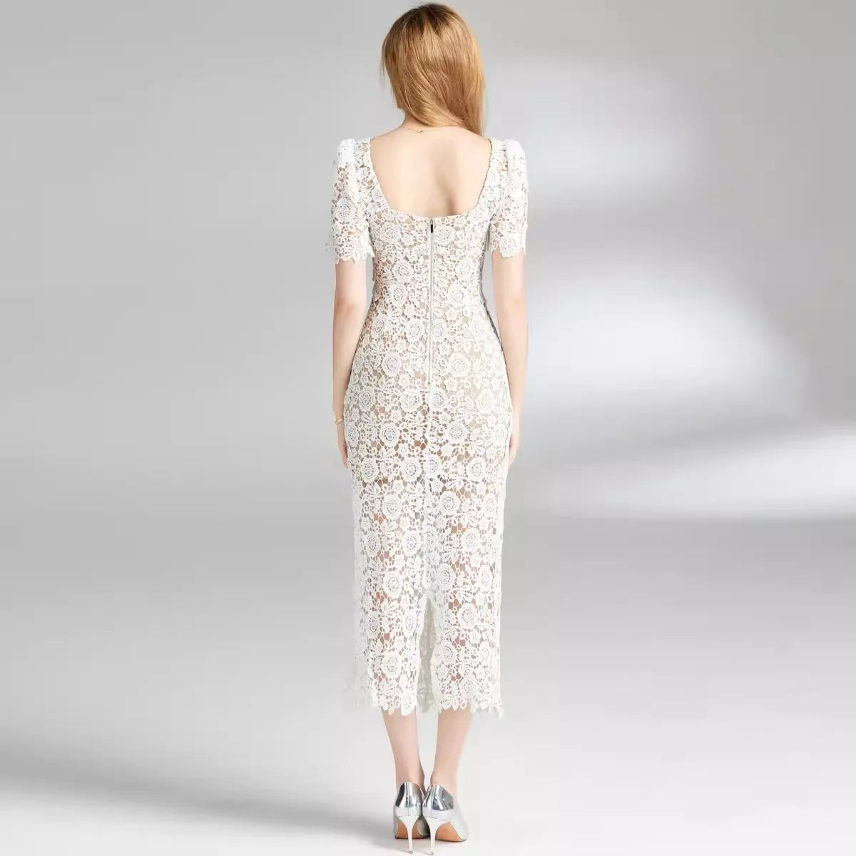 Experience the beauty of nature in our Daydream Daze Midi Dress. Its delicate flower pattern and slim fit silhouette complement any figure. The square collar and hollow out decoration add a touch of elegance, while the cotton material keeps you comfortable all day long. Perfect for a mid-calf stroll in the park.
