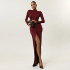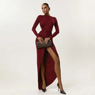Seduce with every stride in the Dominant Flame Maxi Dress. This daring floor-length design features a provocative slit that reveals just enough to captivate, crafted from a sleek polyester and elastane blend that molds to your curves. The high slit adds an element of danger to an otherwise elegant silhouette, perfect for those bold enough to command attention. Wear it when you're ready to make an unforgettable entrance.