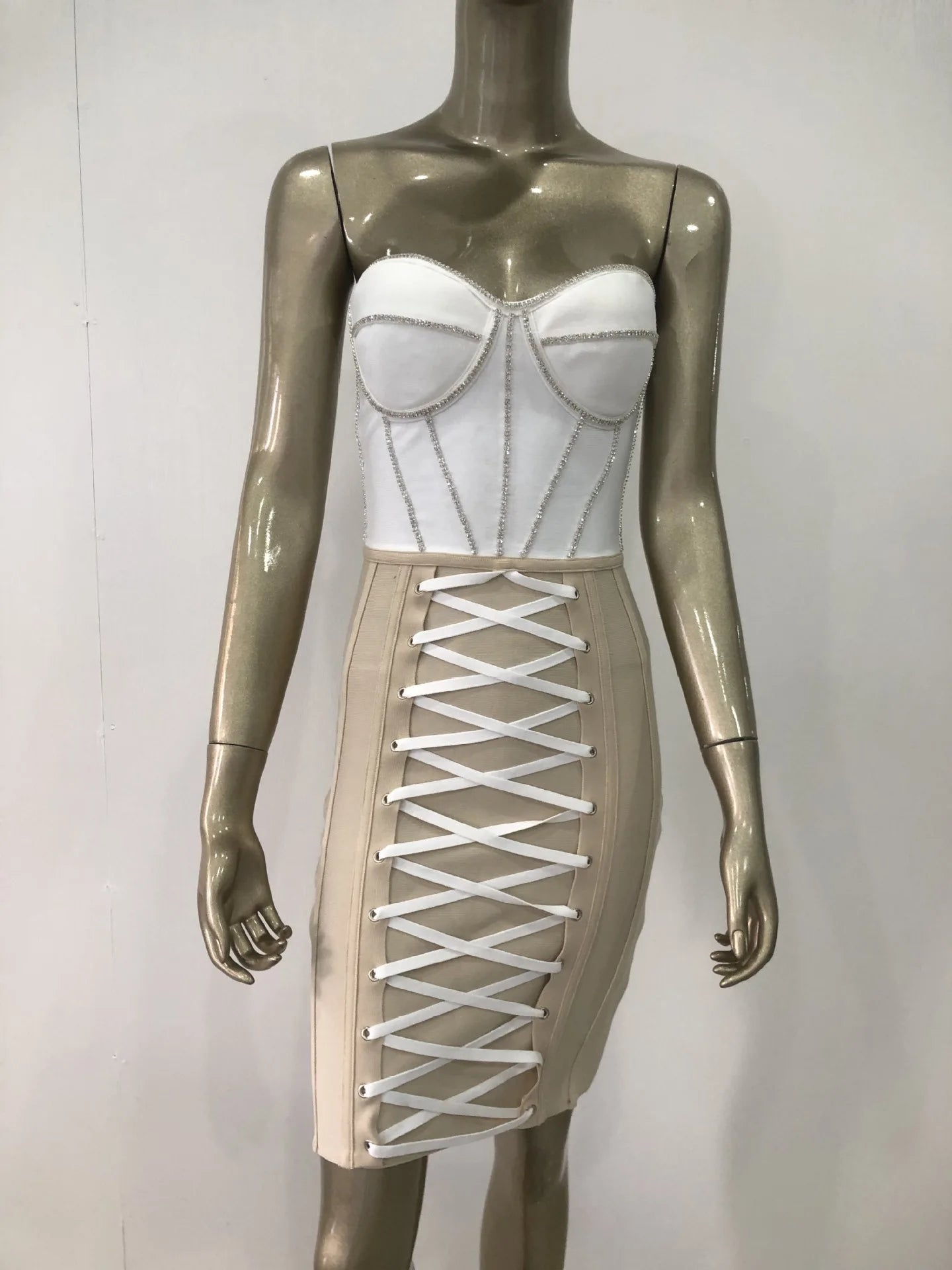 Experience the enchanting beauty of our Ethereal Harmony Mini Dress. With a stunning strapless neckline and elegant rhinestone detailing, this dress exudes a sexy and sophisticated style perfect for a night out. Made from a comfortable blend of nylon and spandex, this mini dress will keep you looking and feeling amazing all night long.
