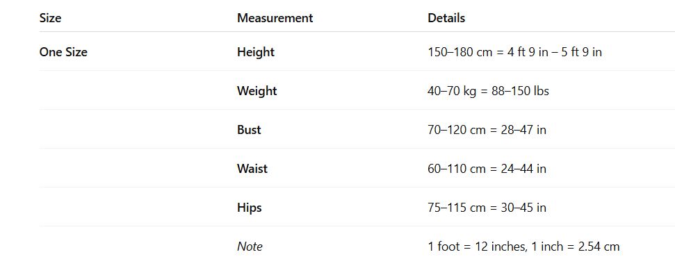 Our One Size products are not the same as All Size. All Size fits all. However, our One Size products have only one size option with limited measurements and do not fit all sizes. Please check the detailed measurements (cm).
