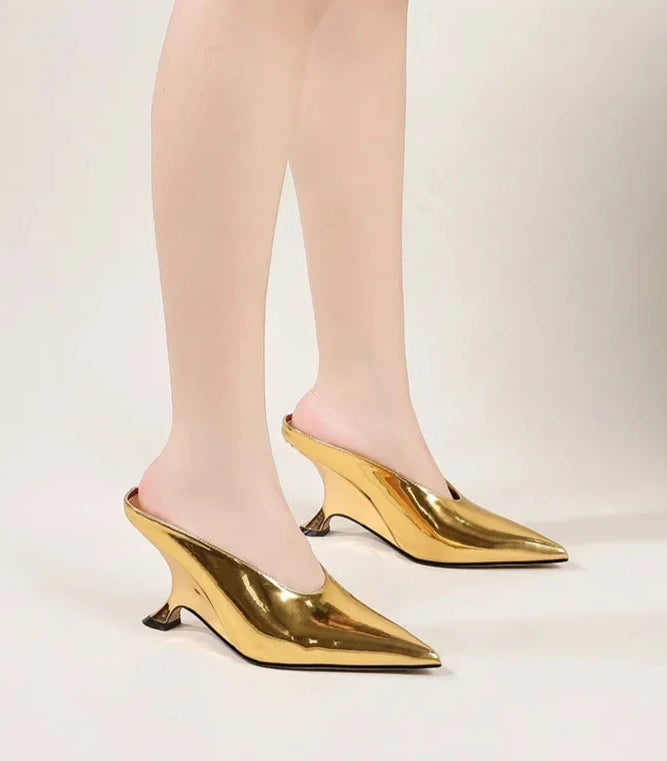 Step into style with the Footsteps In The Twilight Mules Shoes. Made of PU material, these shoes feature a pointed toe and super high heel for a unique and fashionable look. Elevate your outfit and stand out from the crowd with these must-have shoes!