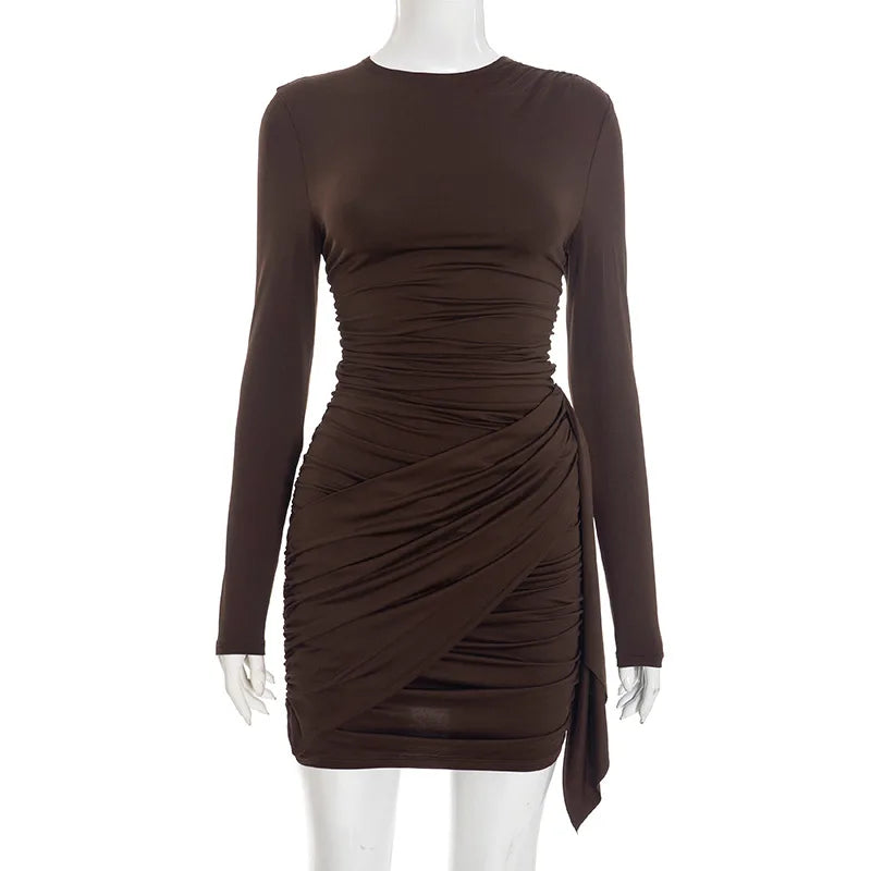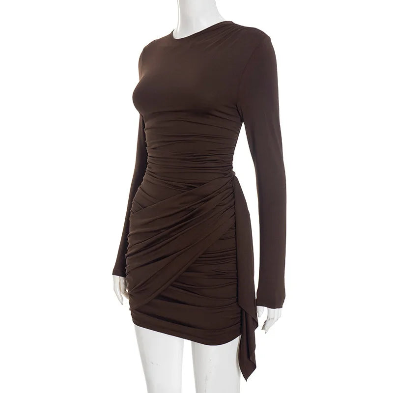 Turn heads in this bold mini dress crafted from a premium polyester and spandex blend. The stretchy fabric hugs your curves while offering all-day comfort and freedom of movement. Perfect for nights out, parties, or whenever you want to make a statement. This daring piece delivers confidence with every wear—sleek, form-fitting, and impossible to ignore.