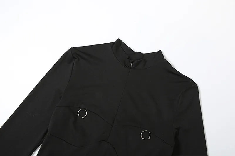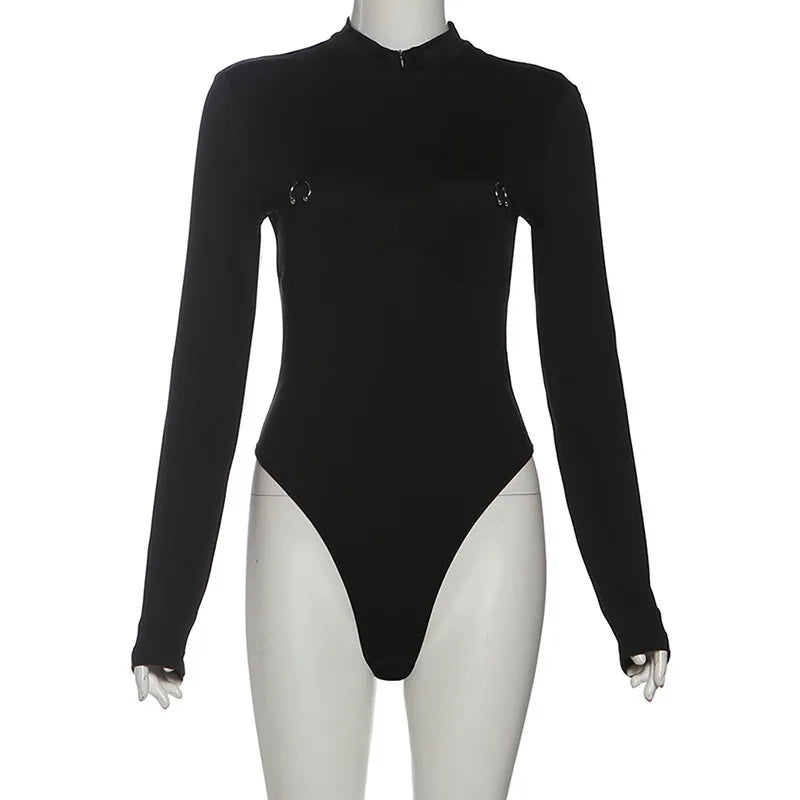 Hot Girl Rhythm Bodysuit Elevate your confidence with this striking bodysuit featuring bold metal ring accents that command attention. The sleek design hugs your curves while the metallic details add an edgy, contemporary edge to any outfit. Perfect for nights out, performances, or whenever you want to make a statement.
