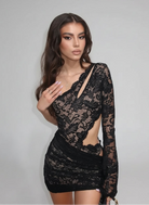Make a statement with the I'm Choosin' Me Mini Dress—a fearless declaration wrapped in luxurious lace. The striking diagonal collar creates an unexpected silhouette that demands attention, while intricate lace detailing adds texture and allure. This dress is for those who refuse to compromise on style or attitude. Bold, unapologetic, and undeniably captivating.