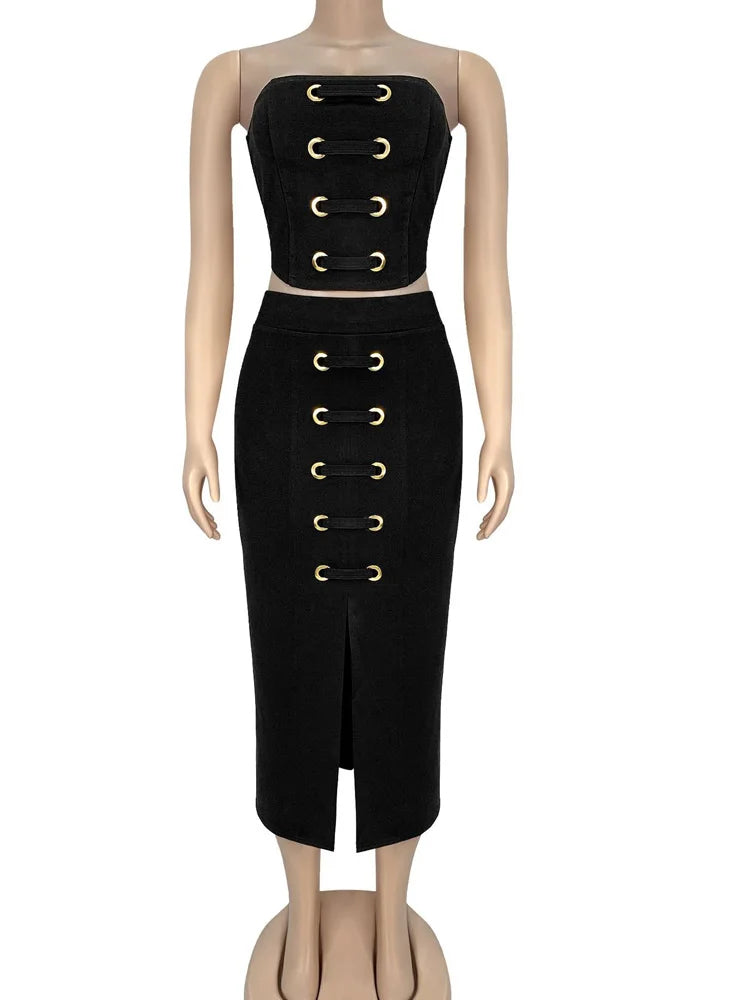 Turn heads with the Naughty Nectar Skirt Set, a daring duo of a sleek short top and matching skirt. This outfit plays with bold style and confident flair, perfect for making a statement at any night out. Embrace your edgy side and own every moment in this striking combination designed to showcase your fearless spirit.