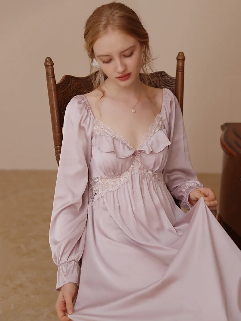 Experience ultimate comfort and luxury with our nightdress. Made with a blend of polyester and silk, this solid-colored nightdress is soft on the skin and features delicate lace details. Treat yourself to a peaceful night's sleep every night with this nightdress.