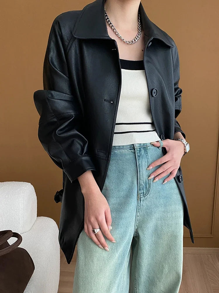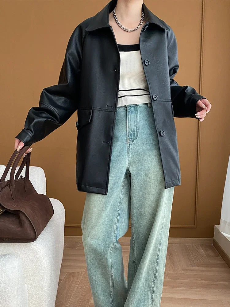 Take on any challenge fearlessly with our Rise Above Fear Jacket. Crafted from high-quality faux leather, this single breasted jacket is both stylish and functional. With convenient pockets and a button closure, it's the perfect choice for everyday wear. Embrace your inner strength and make a statement with our jacket.