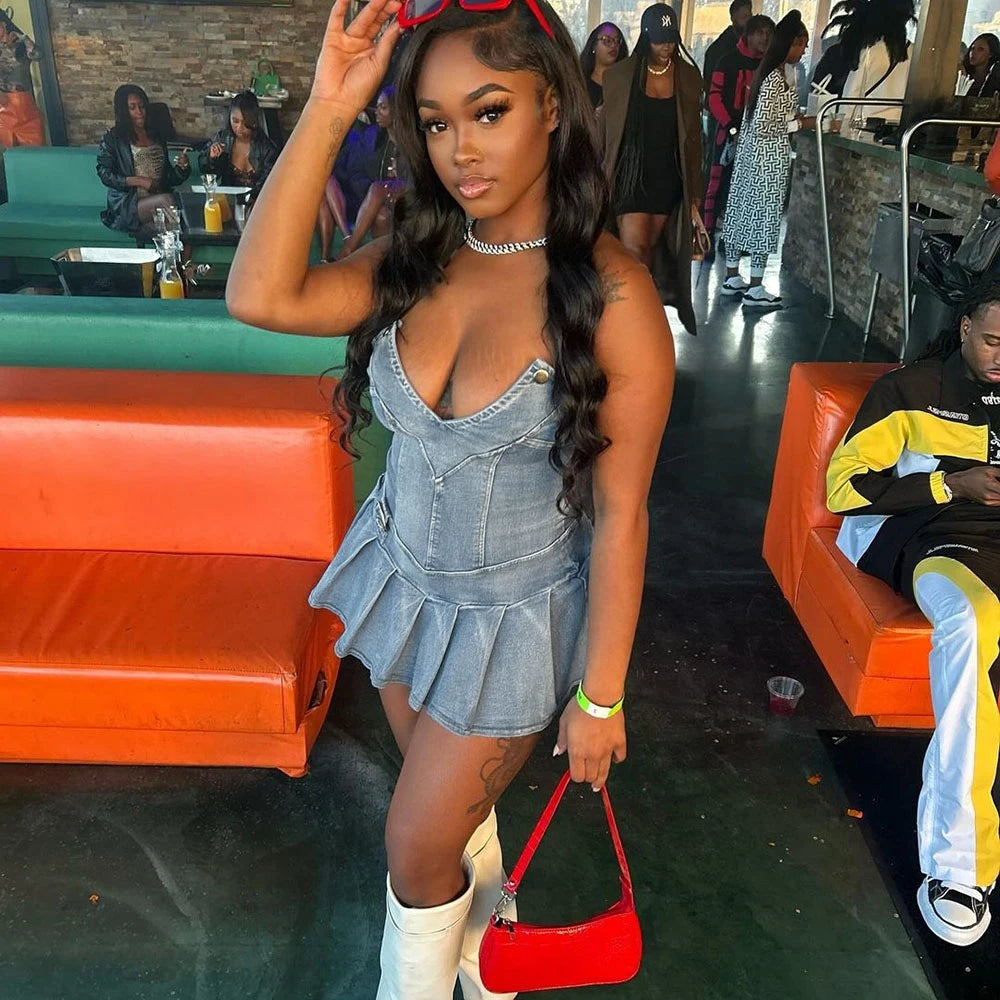 Transform your wardrobe with our Spark A New Flame Mini Dress. The slim fit and solid pattern will accentuate your curves and make a statement. Featuring a strapless neckline and a draped design, this mini dress is made with high quality denim for a stylish and comfortable look.
