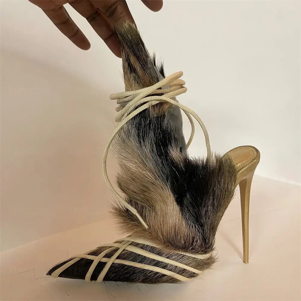 Step into bold sophistication with these Summer Hay Mule Shoes, featuring a luxurious faux fur upper that demands attention. The sharp pointed toe delivers an edgy, fashion-forward silhouette that refuses to blend in. Perfect for those who dare to make a statement, these mules combine tactile comfort with unapologetic style. Whether you're commanding a room or turning heads on the street, these shoes prove that summer style doesn