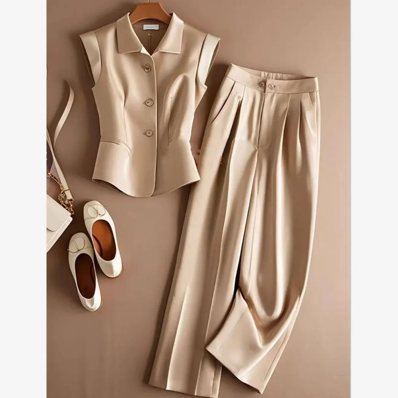 Introducing the Nonsense But Chic Pants Set - the perfect balance of fashion and functionality! Made with a blend of acetate and polyester, it's lightweight and durable for all-day wear. Upgrade your wardrobe with this versatile and stylish set!