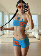 Elevate your boldness with the Black Candle Shorts Set, featuring a sleek bra top paired with matching shorts. Designed for ease and style, its pullover closure ensures quick confidence with every wear. Perfect for making a daring statement wherever you go.