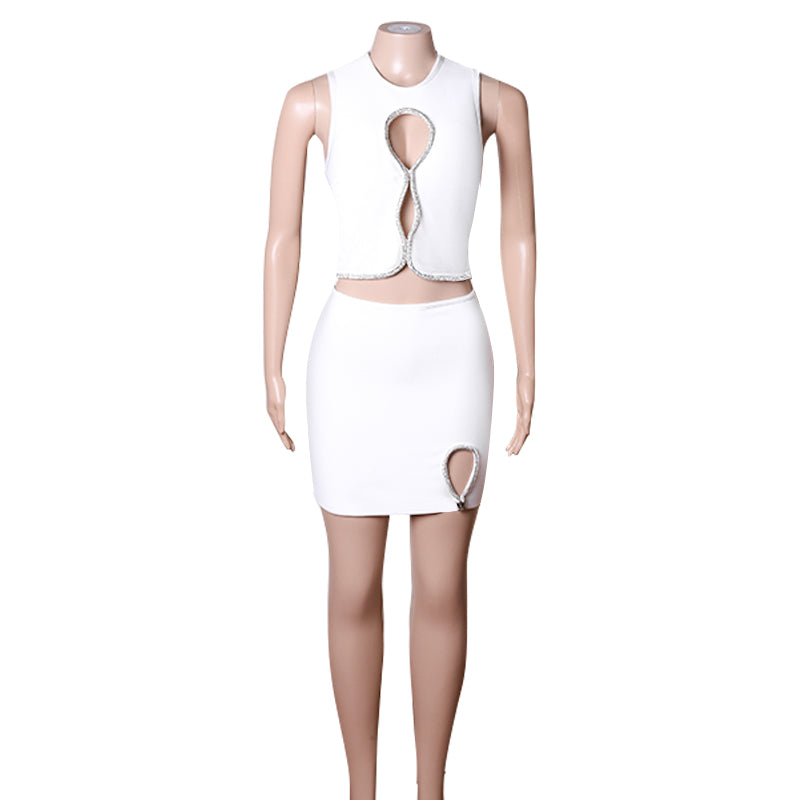 This two-piece set is a versatile addition to any woman's wardrobe. It is made of high-quality, breathable fabric and has a chic, minimalist design. The crop top is sleeveless and has a high neckline. The skirt is a mini skirt that falls just above the knees. The zipper closure is easy and will fit you comfortably. This set is perfect for casual outings.