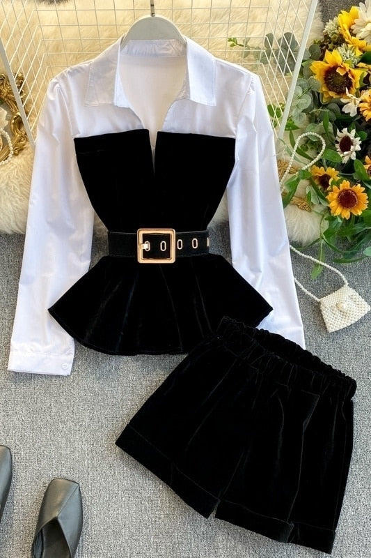 This women's short set is the perfect piece to wear when you want to be both comfortable and cute. The black and white color goes well with a variety of outfits and it is made from 100% cotton, so it is comfortable to wear.