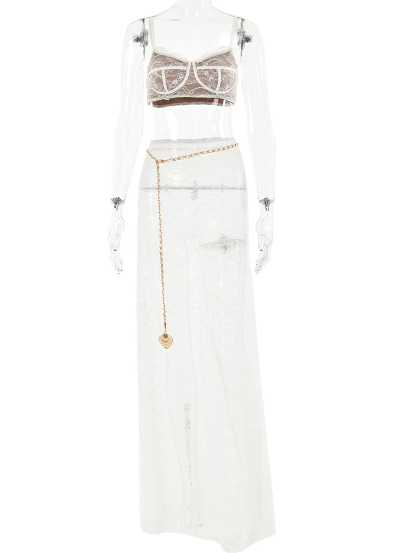 Step onto the dance floor in style with our Moving With The Stars Skirt Set. The floor-length skirts will flow gracefully with every move, while the delicate lace adds a touch of elegance. Made with high-quality polyester and lace, this set is perfect for any formal occasion. Elevate your look today!