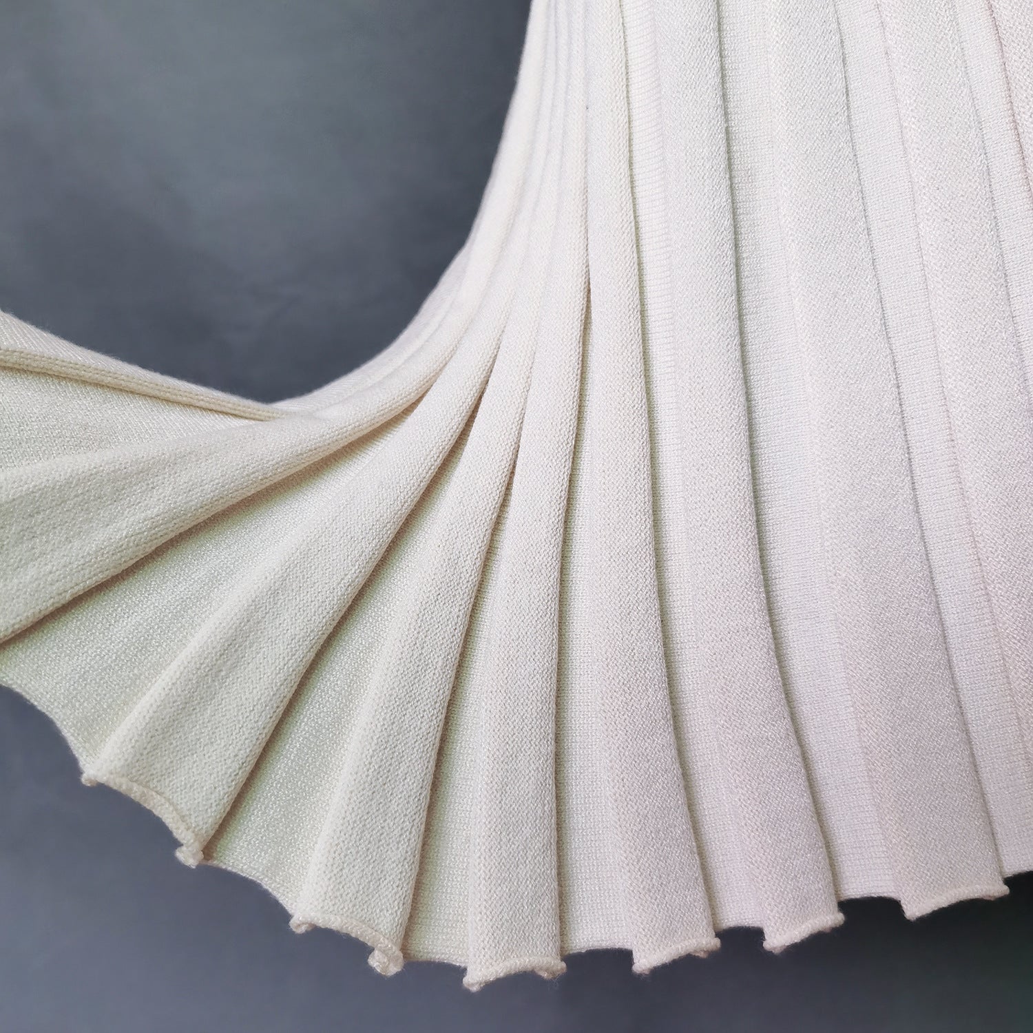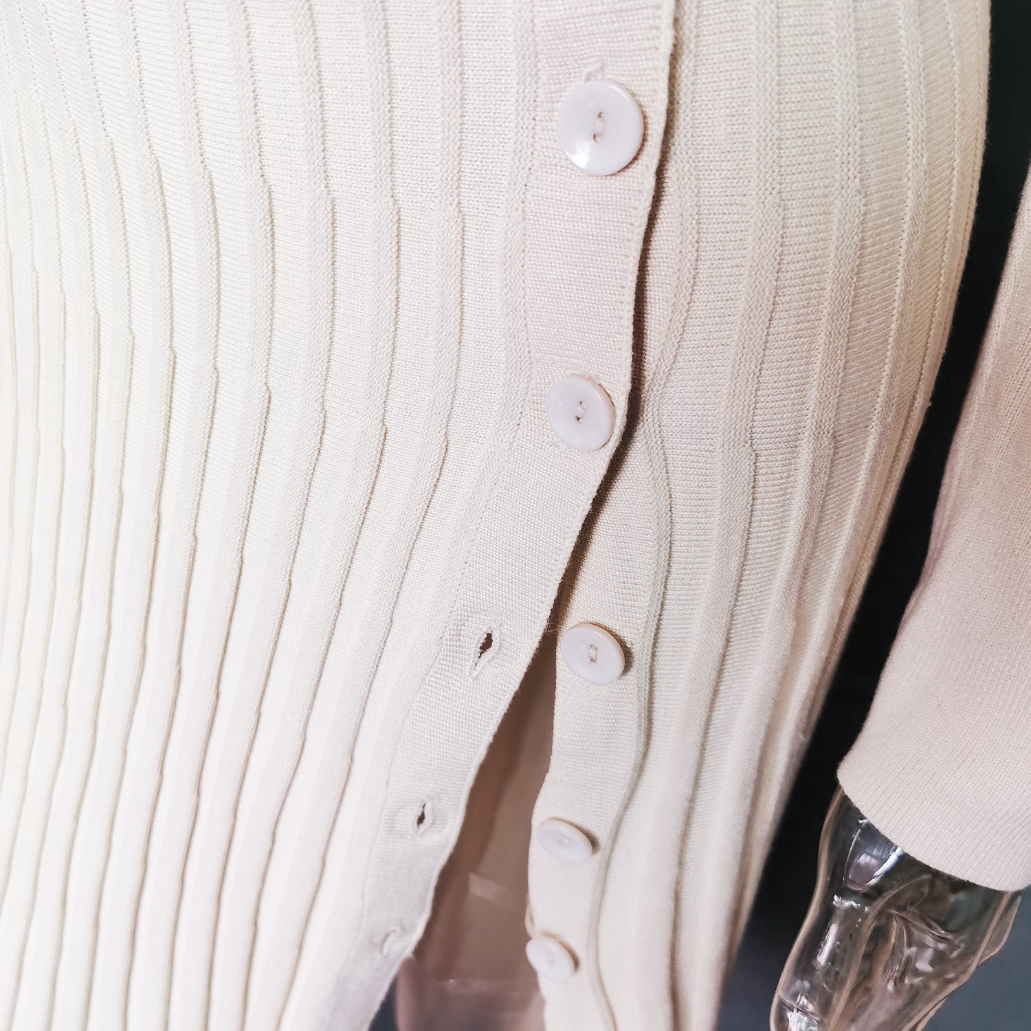 Conjunto de top corto de manga larga de punto y falda midi plisada hecha de algodón y spandex con estilo de abertura alta abotonada
