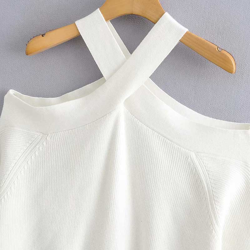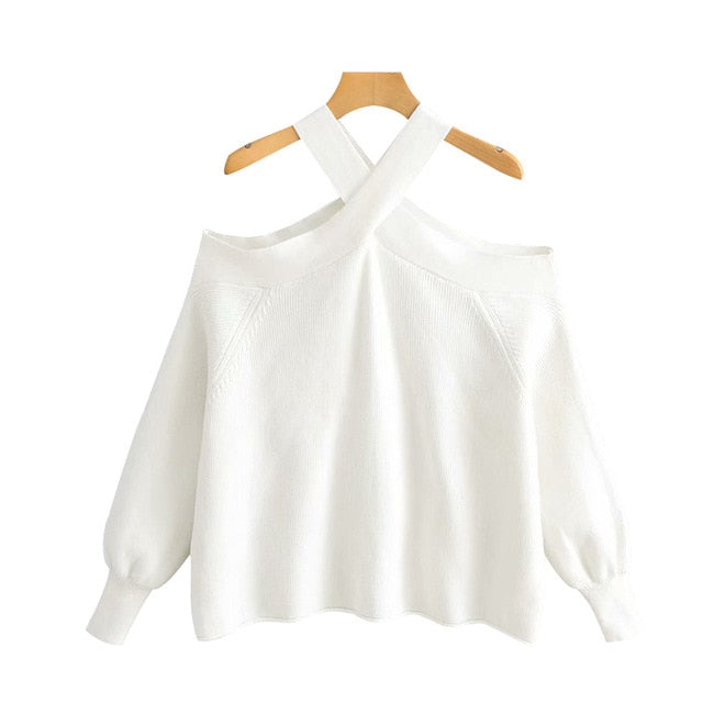 Blusa con hombros descubiertos, manga larga, color liso y material de poliéster