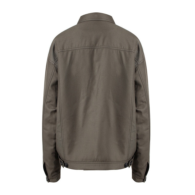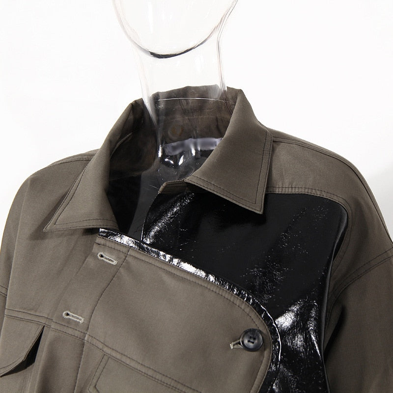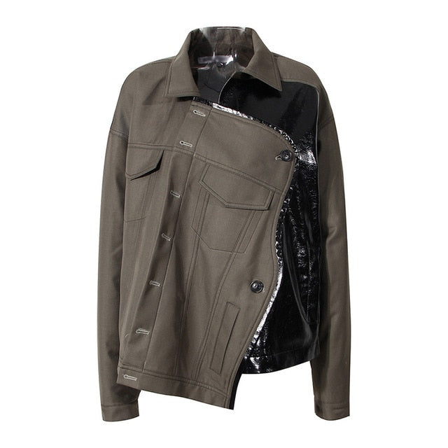 Chaqueta asimétrica de patrón sólido con cierre de un solo pecho y material de algodón y poliéster