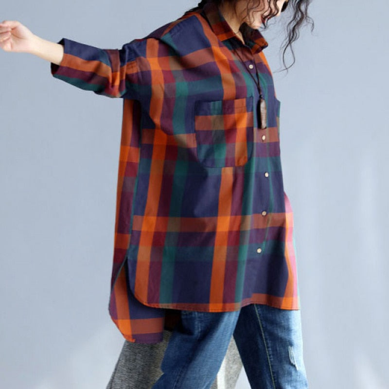 Camisas de manga completa con estampado de cuadros de algodón y poliéster tejido